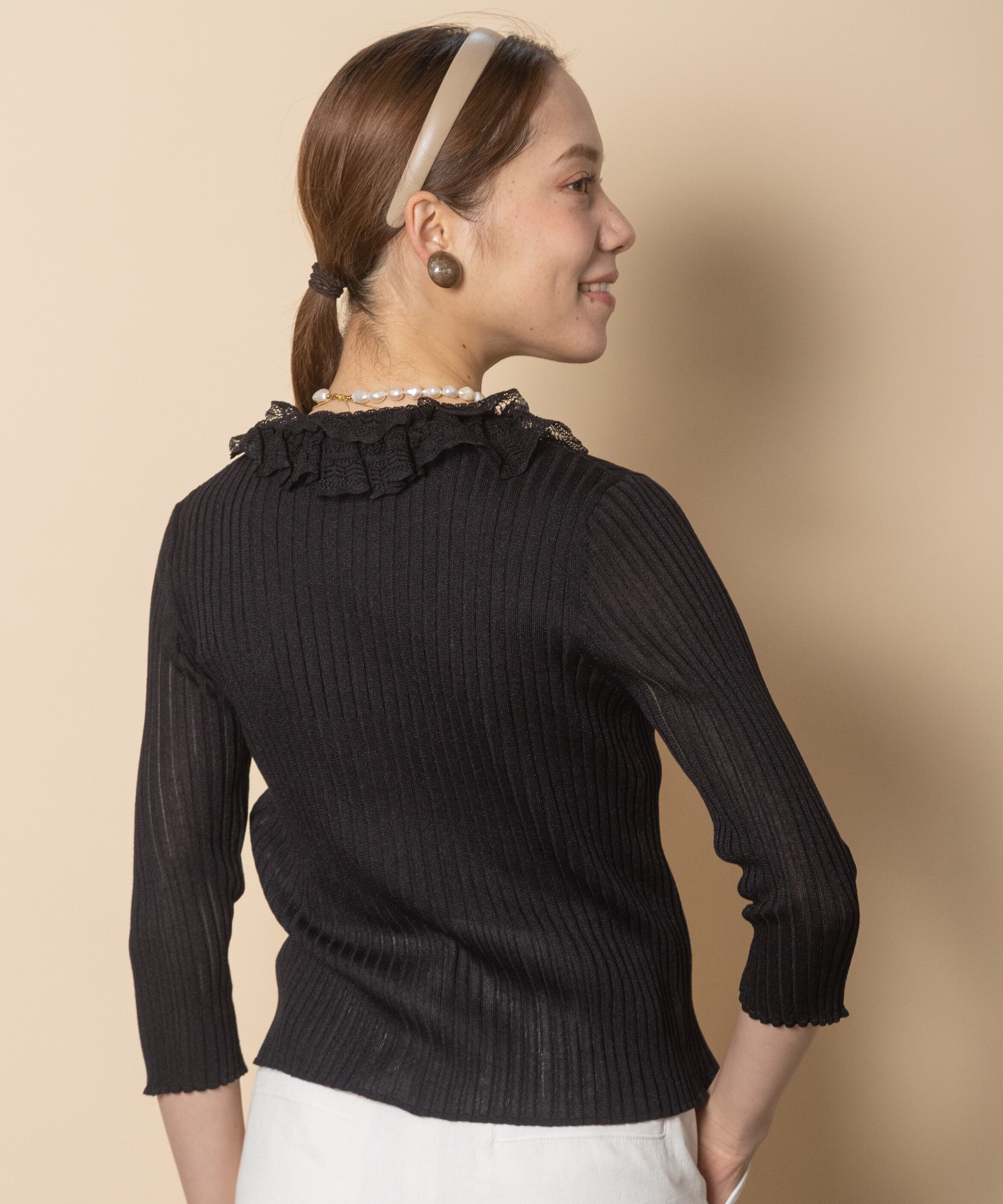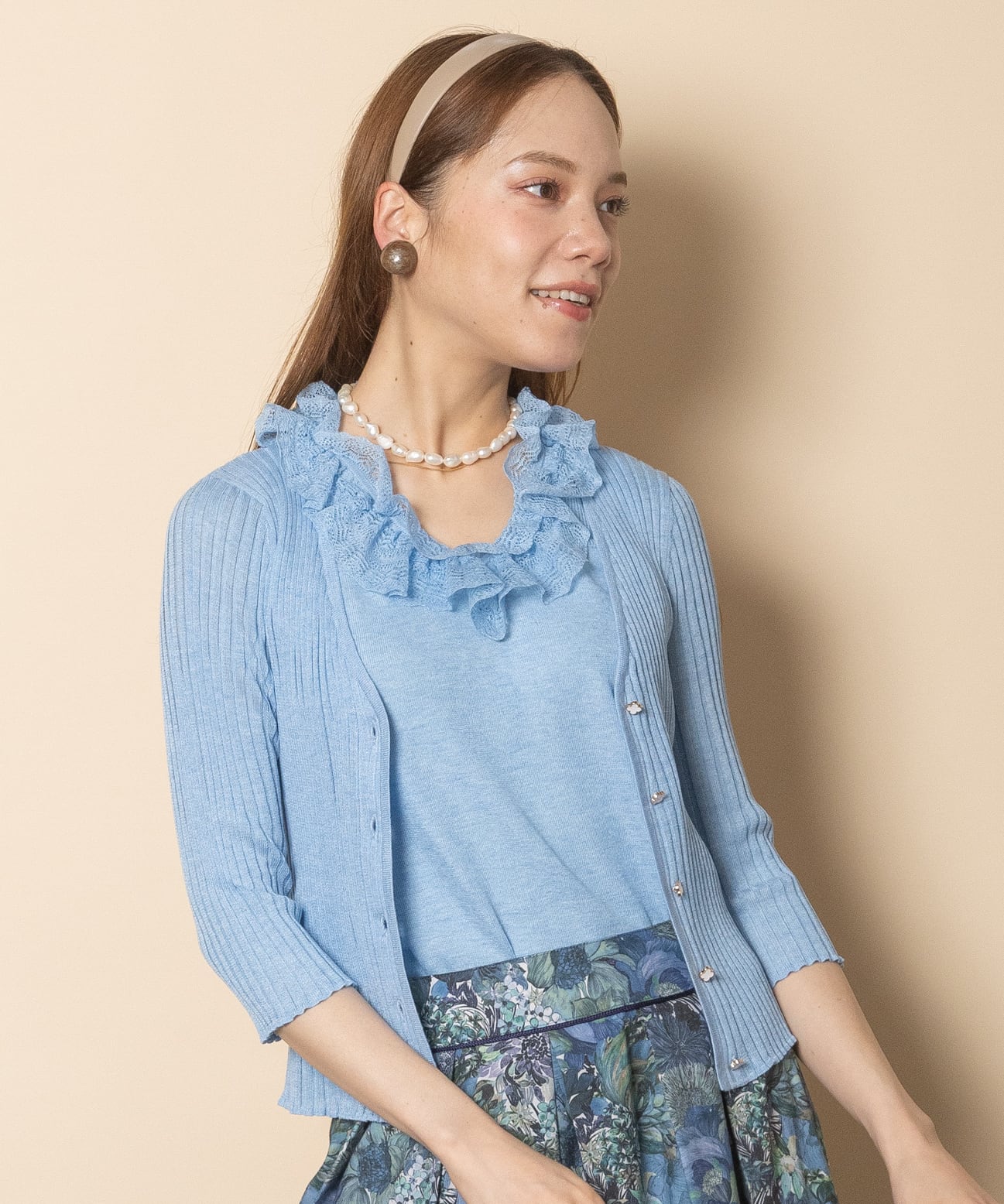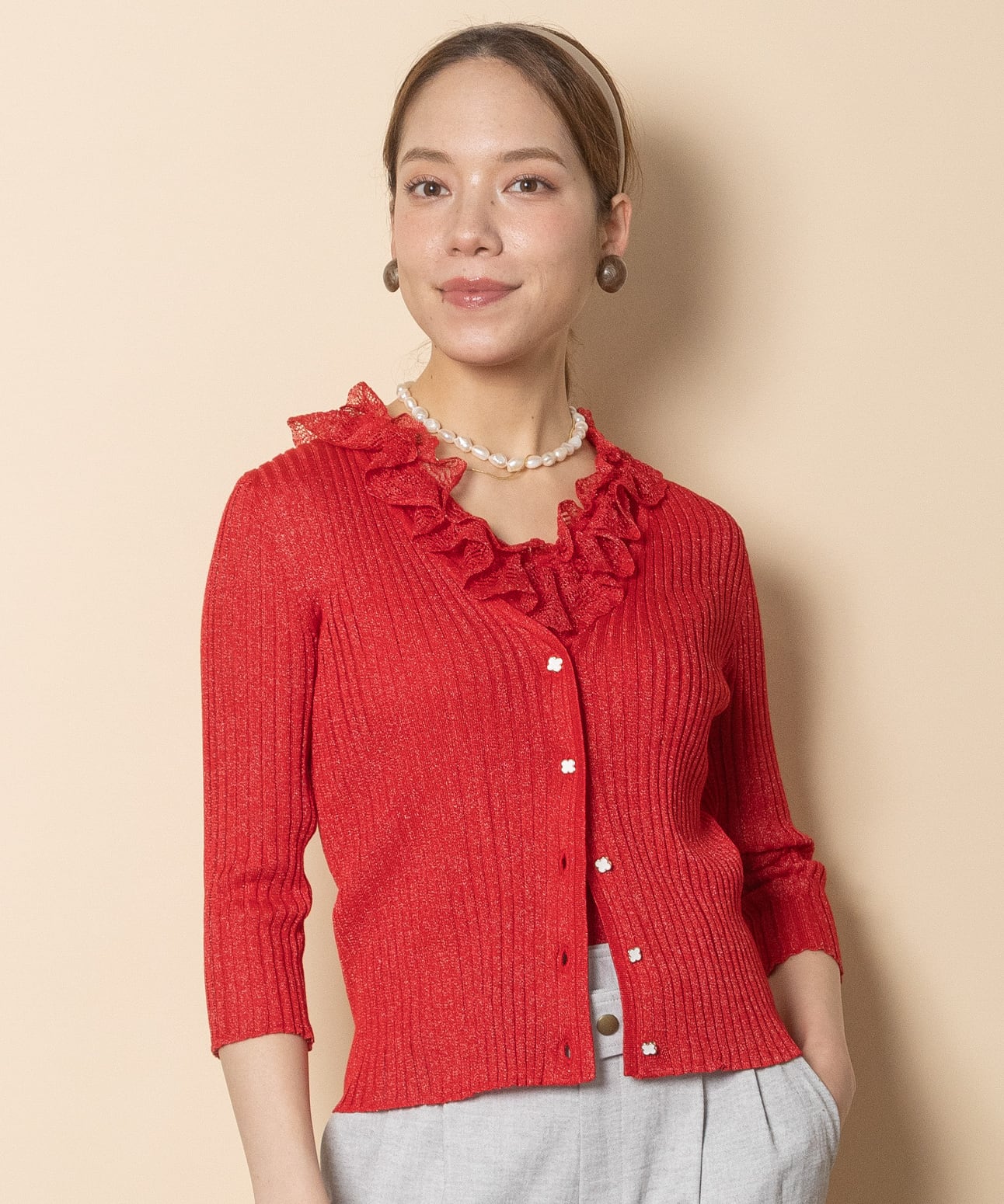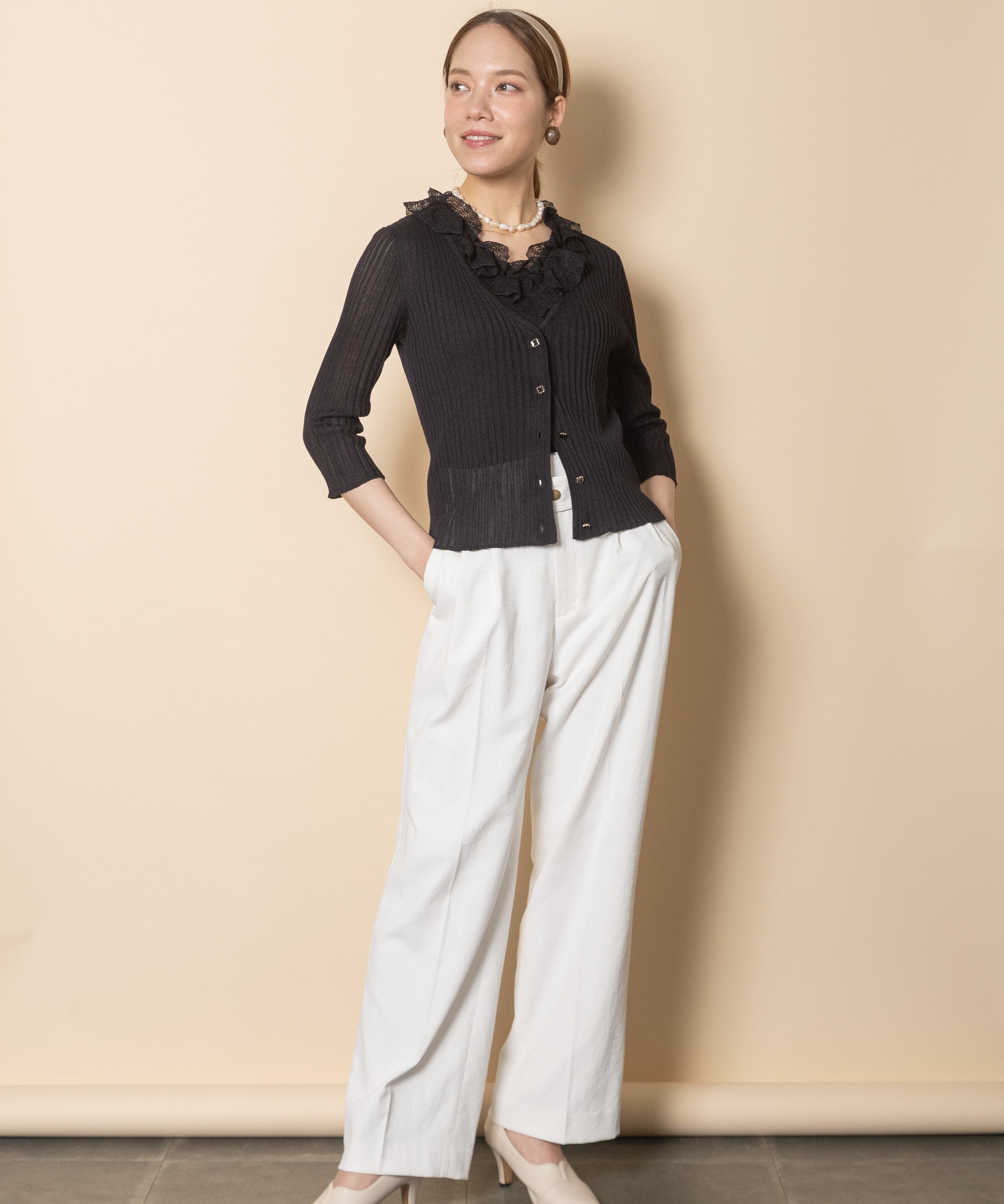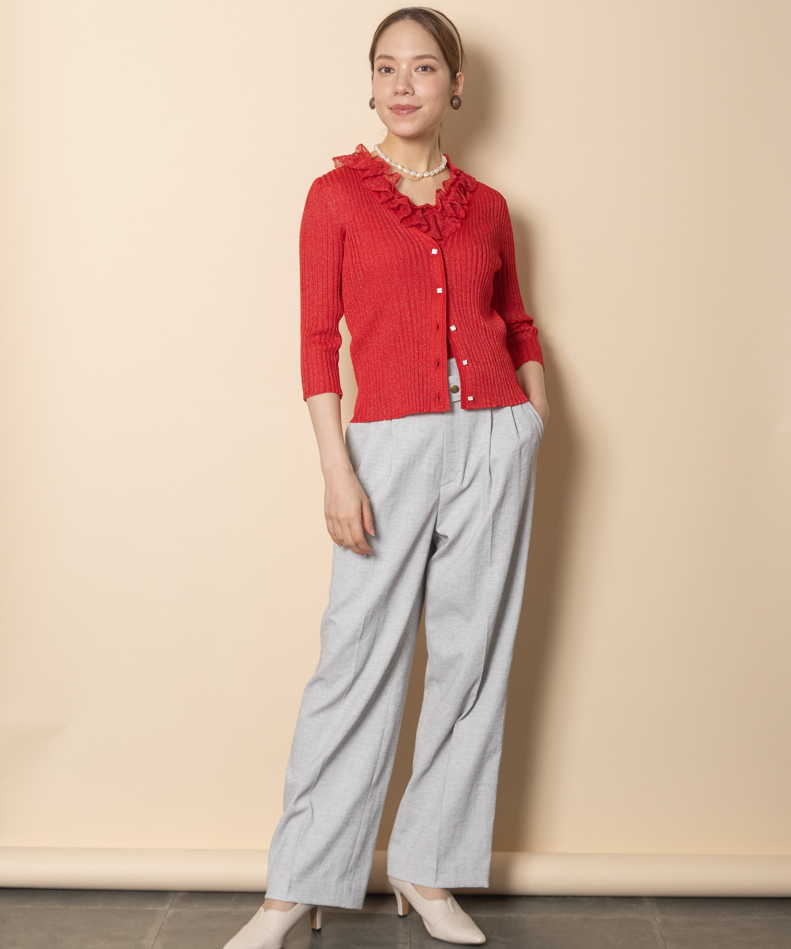 ショート丈でコーデしやすく、パンツスタイルにもスカートスタイルにもOK。お仕事シーンからカジュアルシーンまで幅広いシーンでご着用頂けます。同素材のフリルニットとアンサンブルもおすすめ