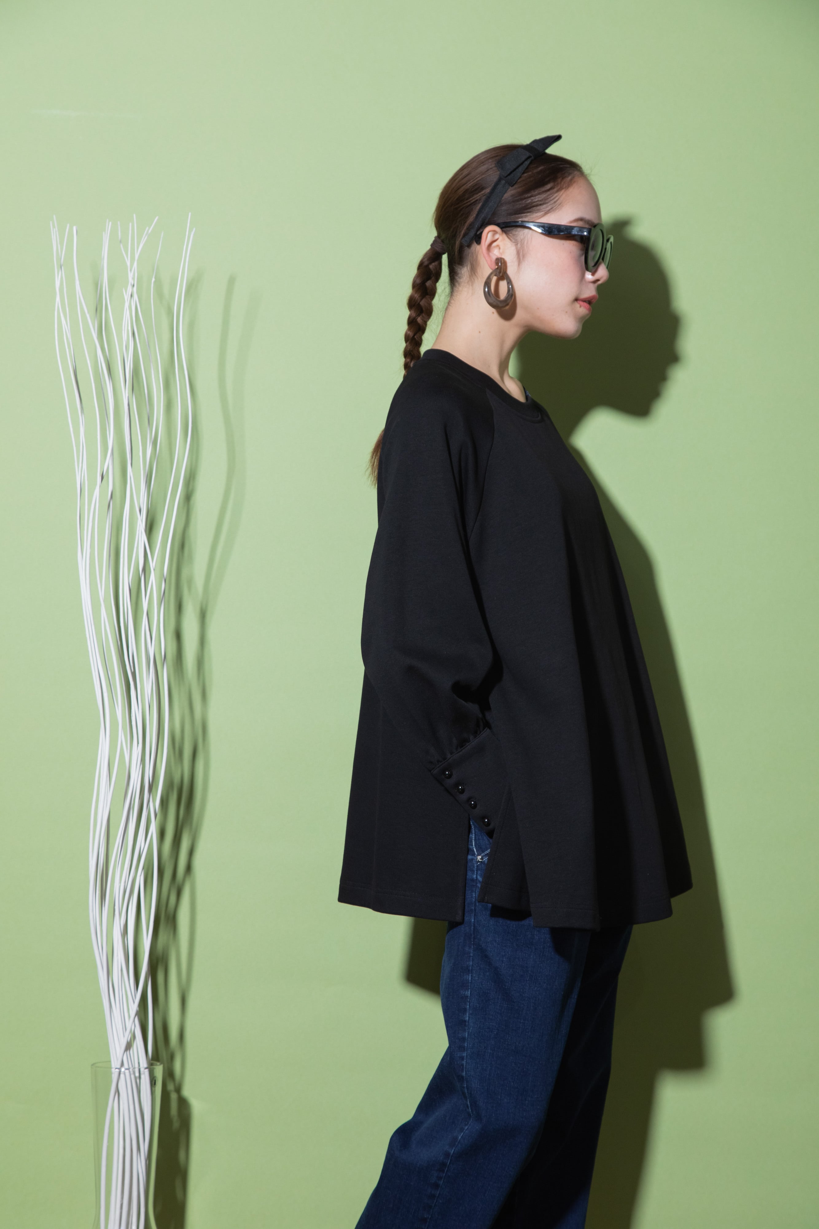 春先に丁度良い軽量シンプルカットソー。裾広がりのフォルムと、袖口に集まったたっぷりギャザーが印象的です。アクセサリーを重ね付けしたり、スキンニットをインナーに仕込んだり、思わず色違いで揃えたくなるプルオーバーです。