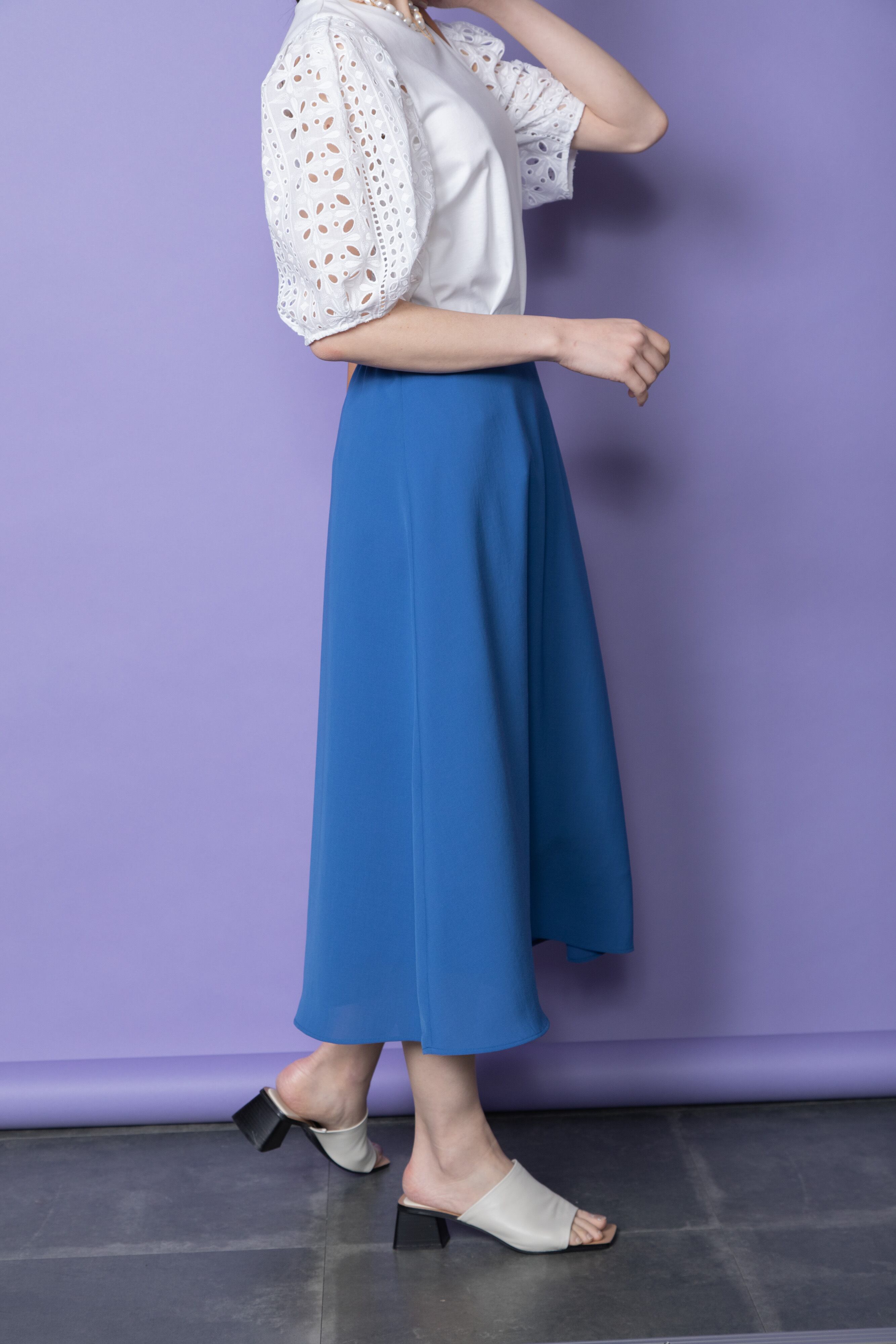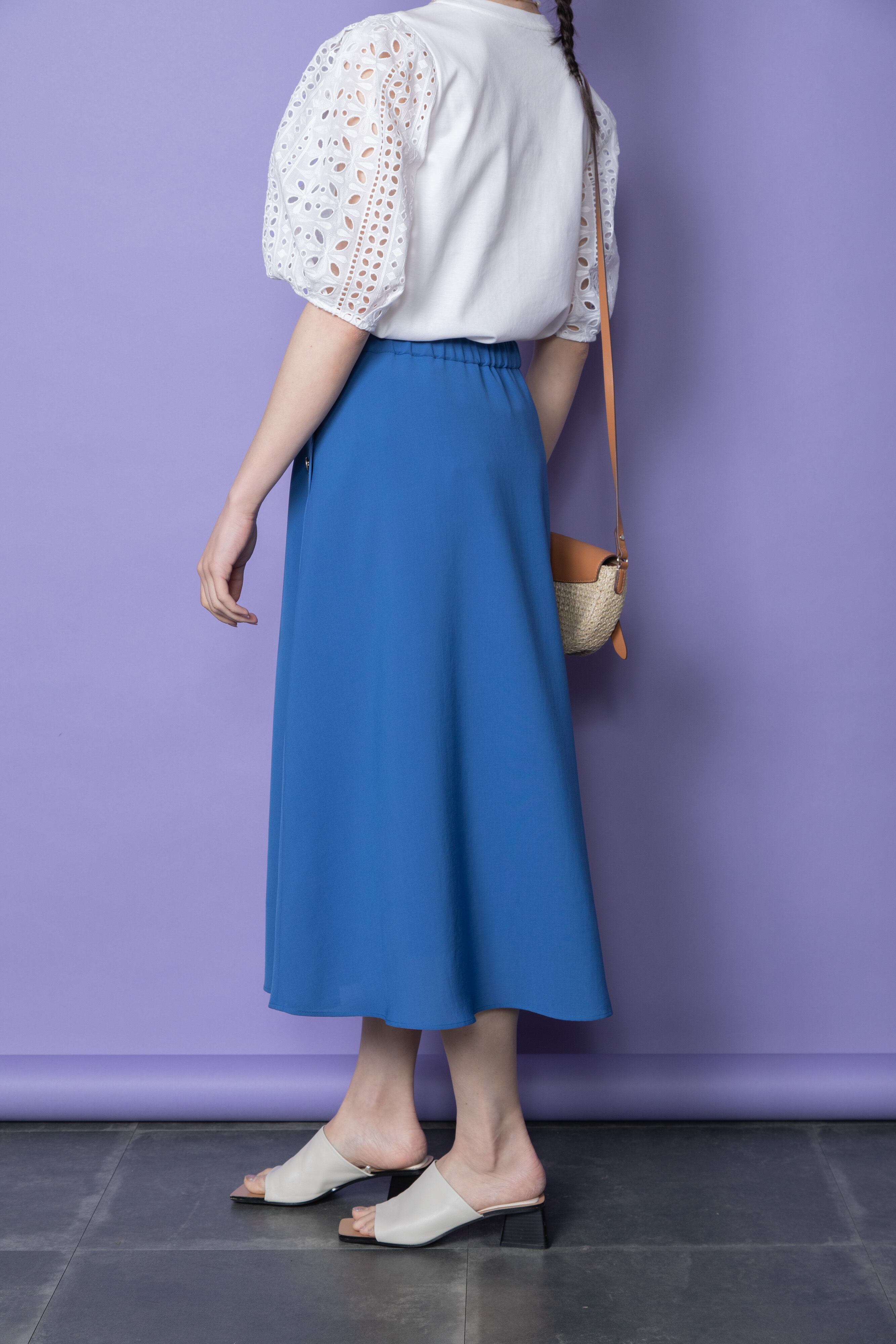 ソフトなドレープ性とナチュラルな見た目で、軽い仕上がりのフレアスカート。コーディネートを邪魔しない艶消しの金属釦が上品なアクセント。同素材のブラウスと同色展開で、オン・オフ着回せるカラーバリエーション。