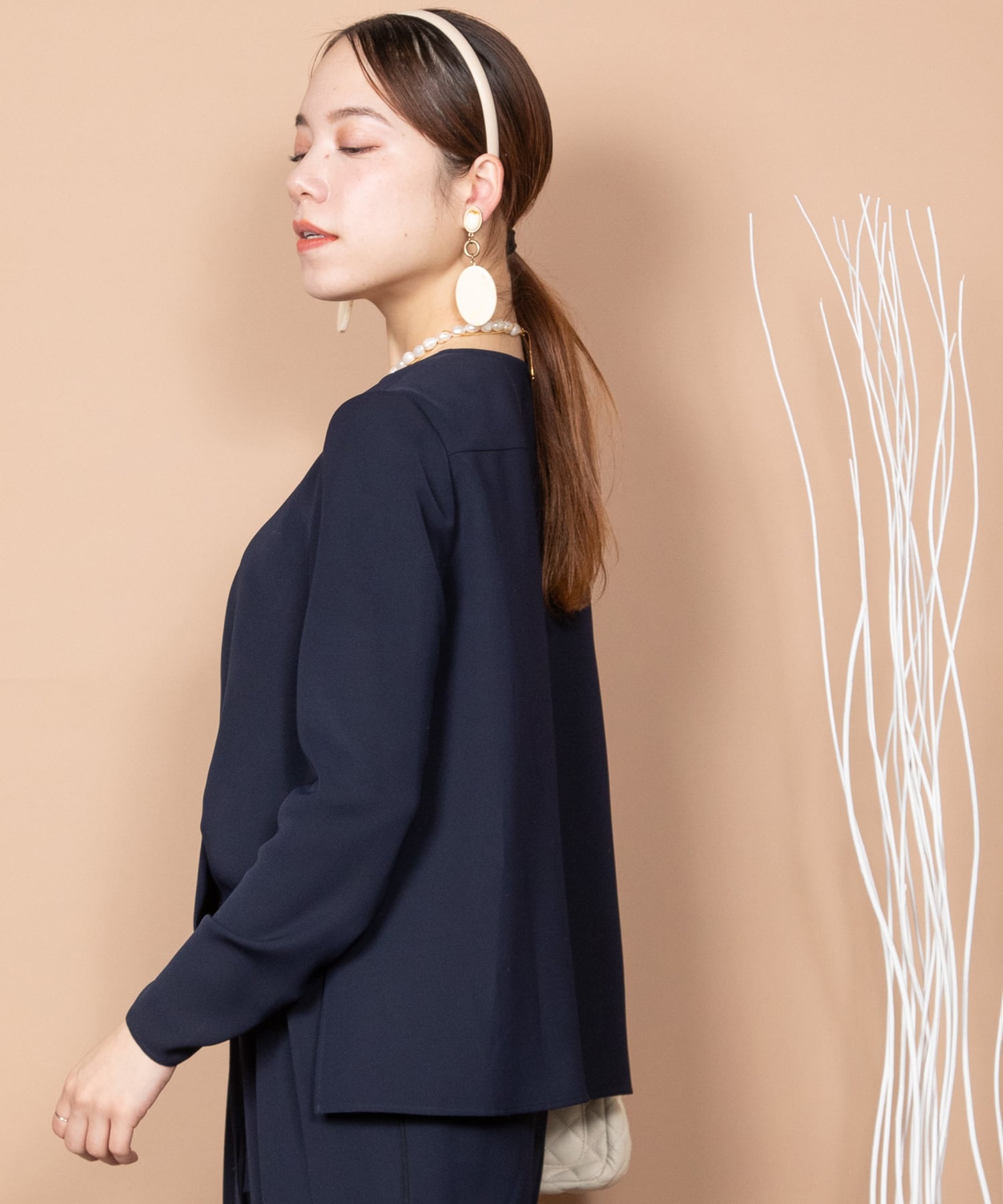 同素材のパンツとの2ピース、ジャケットとパンツの3ピースとセットアップがおすすめ。