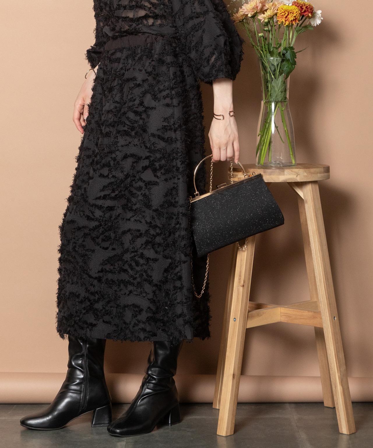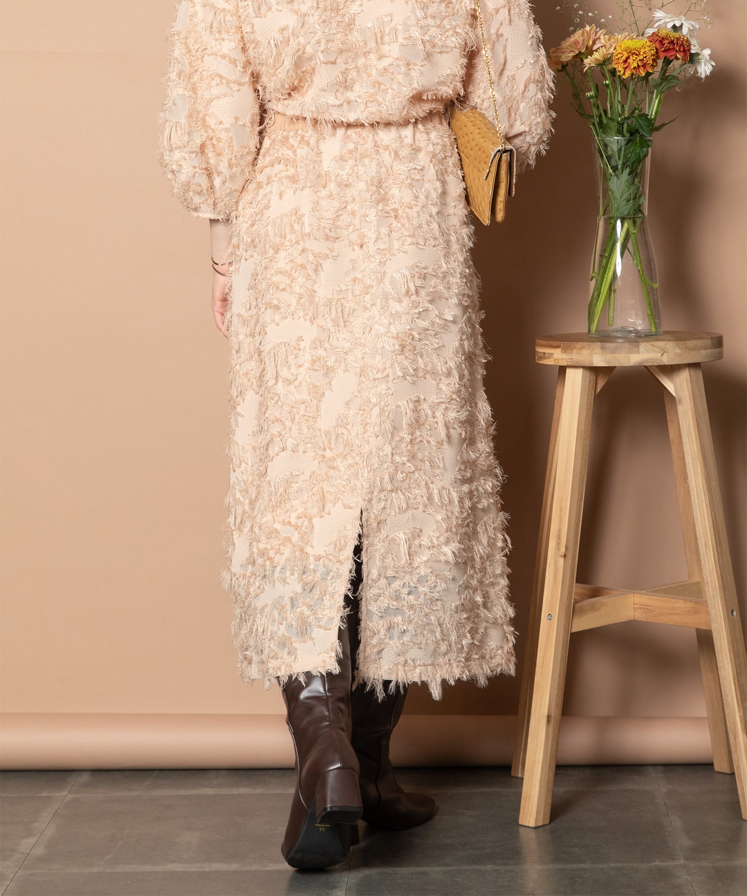 同素材のブラウスとセットアップもおすすめ。式典やパーティなどセレモニーシーンでもご着用頂けます。キレイめトップスでオフィスコーデやお出かけコーデにおすすめ。ブーツとも相性の良いスカートです。